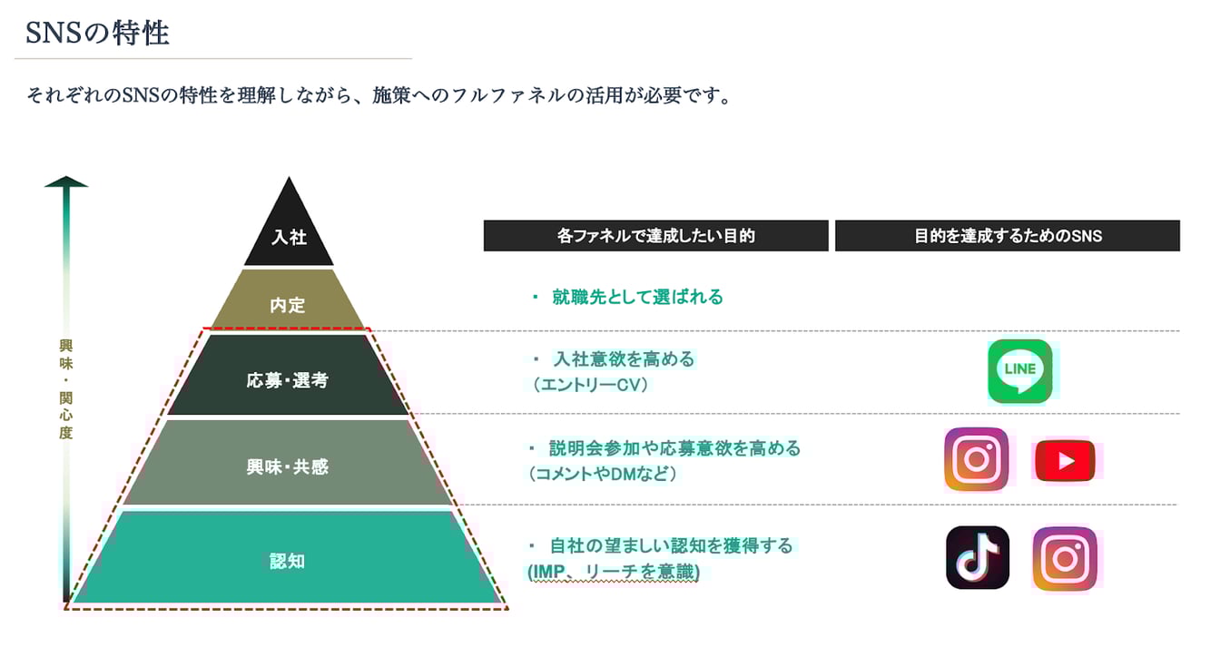 1.各SNSの特性を理解し、求職者の行動段階に応じて適切に使い分ける