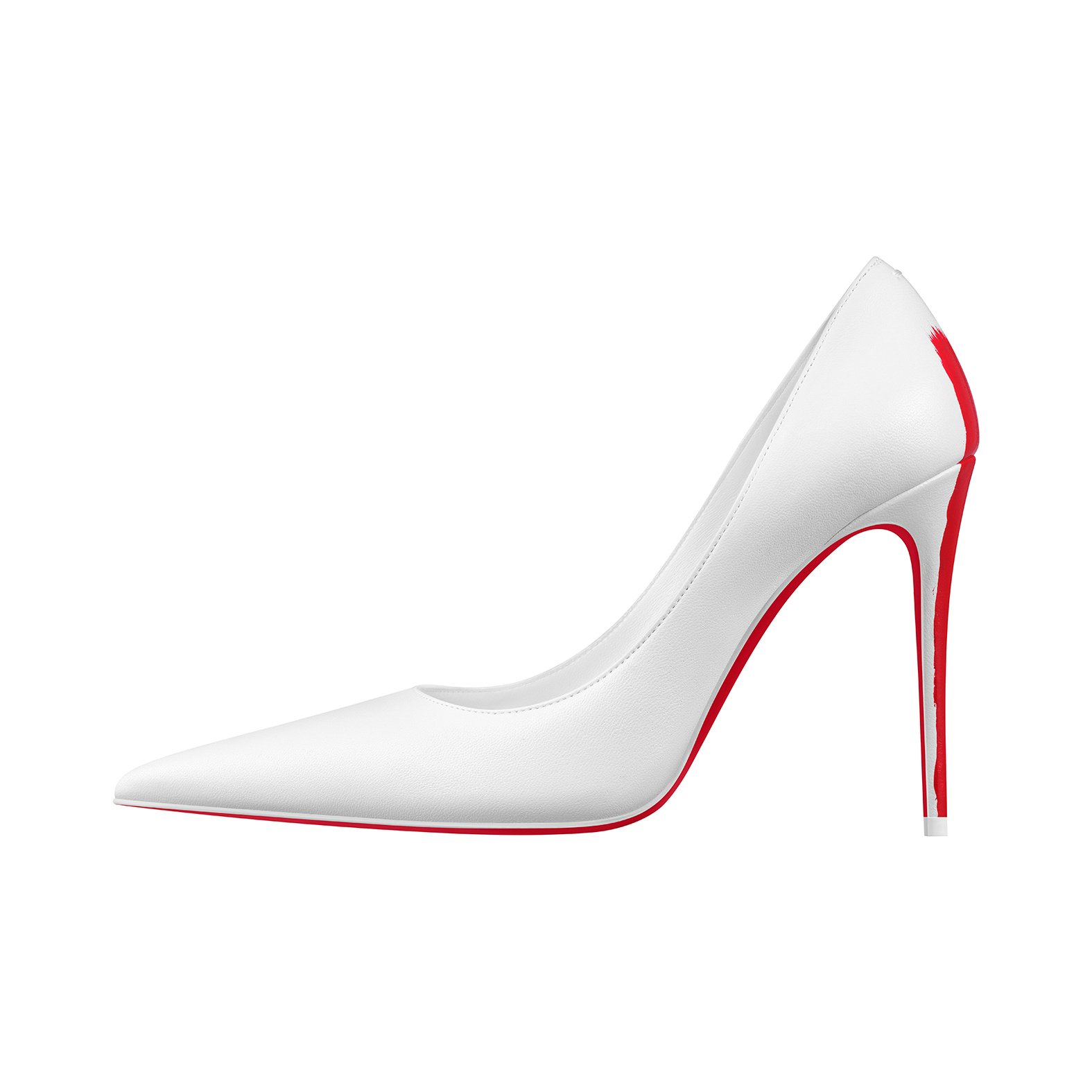 「クリスチャン ルブタン バイ メゾン マルジェラ」では、クリスチャン ルブタンのシルエットに、メゾン マルジェラの「デコルティケ」の概念を融合。縫い目や構造、留め具以外のすべてのパーツとレイヤーを取り除く技法で製作した。クリスチャン ルブタンの象徴である「Kate Max」の木型をベースに、手作業で部分的にレザーを剥がした「Bilougiela 25」(20万9000円)や、レザーを削ぎ落とすことで、シューズの内部があらわになった「Martinloula」(17万4900円)など4型を用意する。