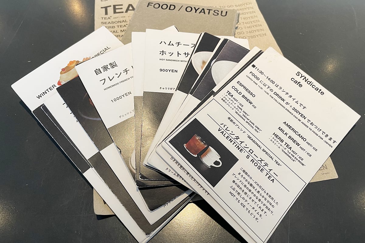 平日13時頃に伺ったので、店内は混み合わずゆったりモード。メニューがひとつひとつ、トランプの絵柄のようなデザインになっていてかわいい!パラパラめくって見るのが楽しい仕掛け。