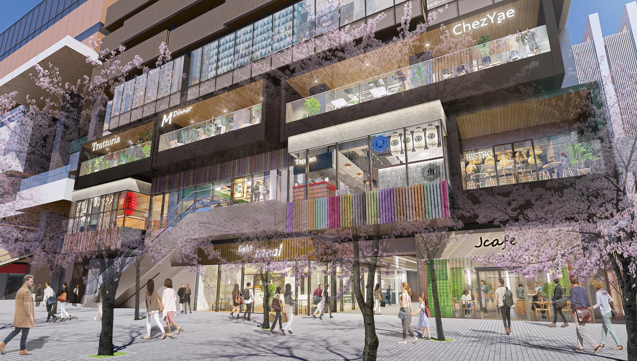 街区内の商業施設には、飲食店を中心とした約70店舗がオープン予定。トフロム ヤエス タワー1階には、屋内広場「檜物町スクエア」を整備し、街の賑わいを創出する。