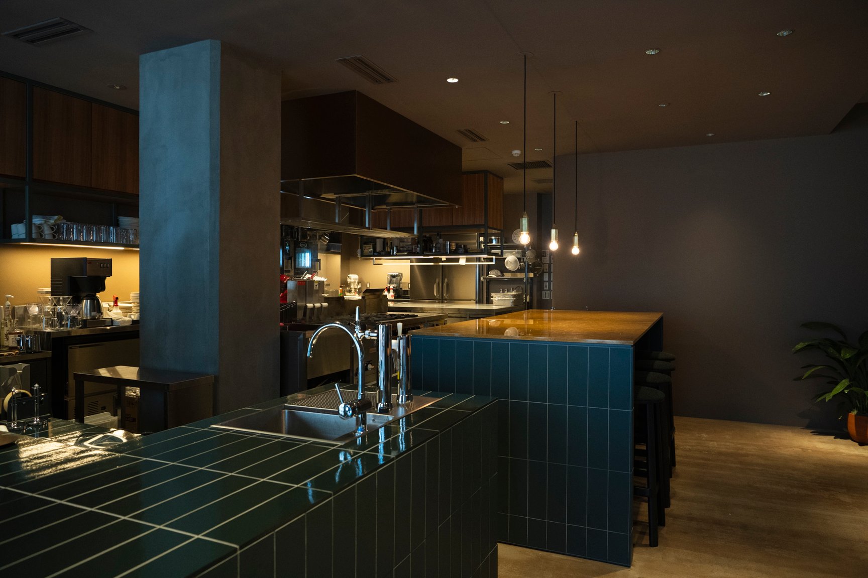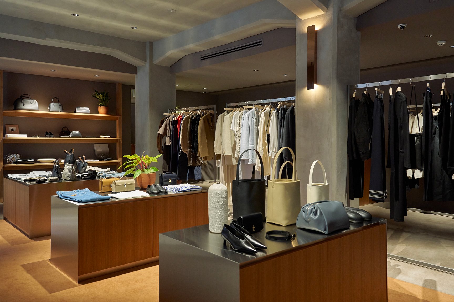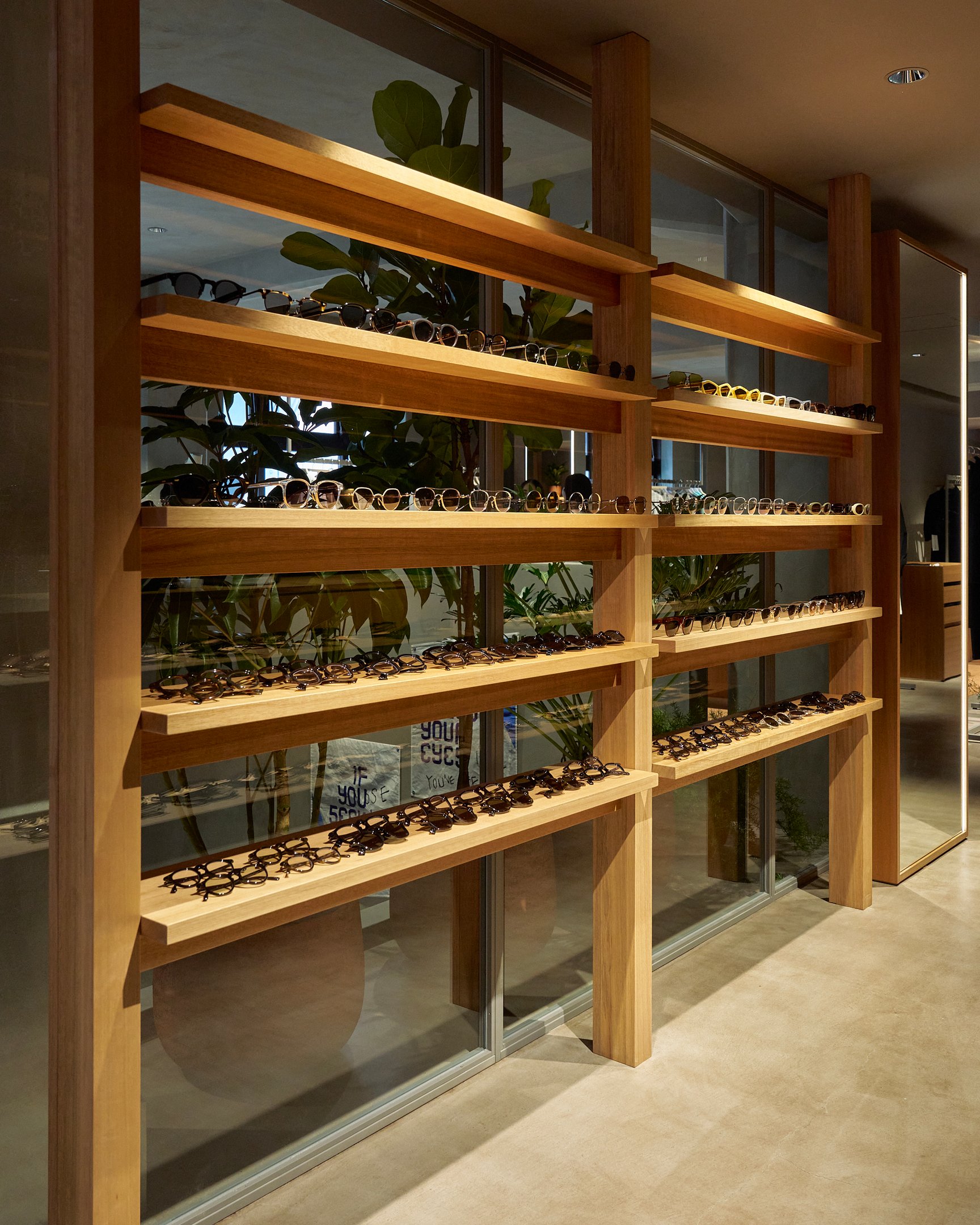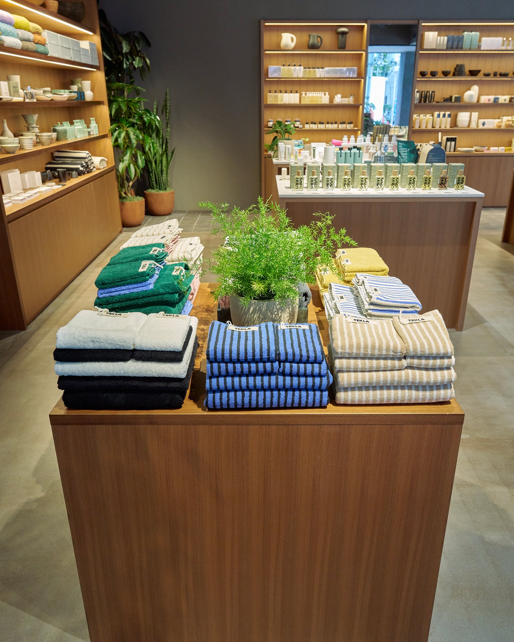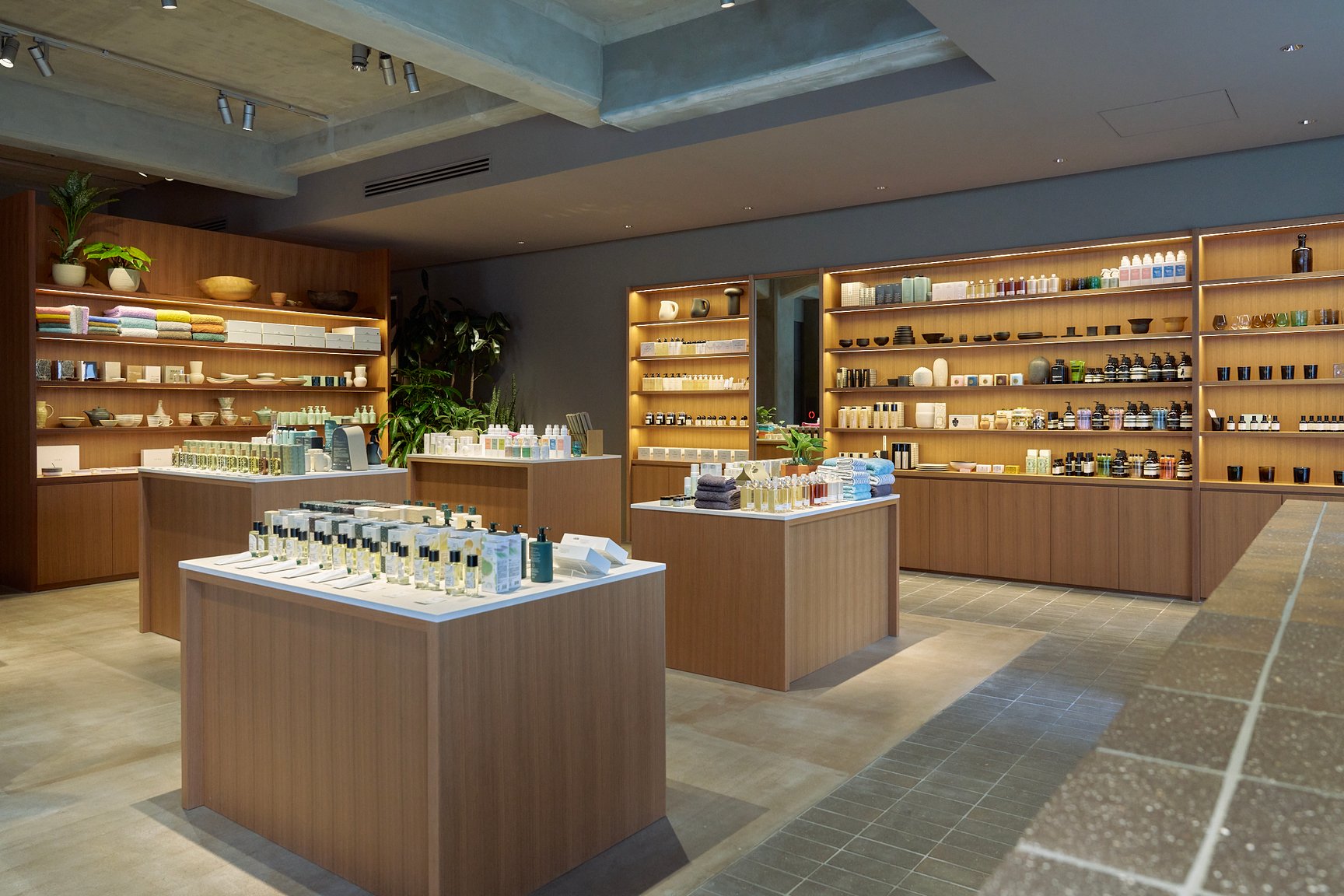 同じく関西エリアに出店している大阪店はカフェスペースやボタニカルショップ、ライフスタイルグッズの売り場をあえて繋げていたのに対して、神戸店は、元々の建造物の天高な特徴を活かしながら、物販と飲食の空間をライティングや柱の配置などで区切る。大阪店と顧客層が重なることが予想される神戸の立地のおいて、既視感のある空間を作らないことを重視したという。