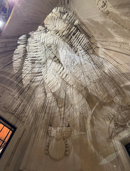 彼女のインスタレーションに立ち尽くすとき、私たちはただ「見る」のではなく、そこに「存在する」ことを試される。それは単なる空間ではなく、時間が織り込まれた迷宮であり、記憶と感情が絡み合う場だ。