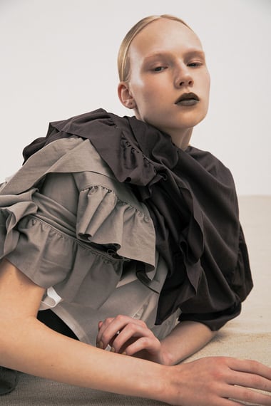 25年春夏に出すフリルTシャツは重ねて着用してビジュアル用に撮影した