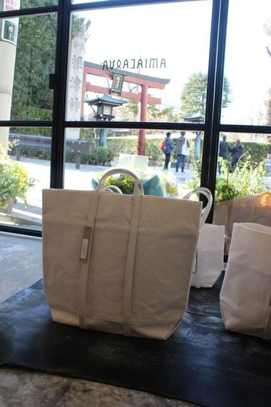 シンプルな店内には、定番のコーマ糸を使ったオリジナルの6号帆布のトートバッグ(中サイズで税抜き1万6000円)や形状記憶のポリエステルギャバジンを使った黒のリュックなどをはじめ、最新シーズンの商品が揃う。毎シーズン新柄を出すイージーバッグもある。また、東京店限定で伊のタンナー、グイディ&ロゼリーニの革を使った財布(小サイズで4万2000円)を販売する。