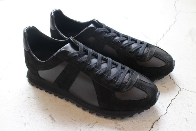 同シューズは80年代からドイツ軍の屋内トレーニング用スポーツシューズとして納入されていた通称・ジャーマントレーナー。94年に納入はいったん終了したが、99年にドイツ軍主導のもと新たにプロジェクトが始動し、今もミリタリーオフィシャルシューズとして正式支給されている。