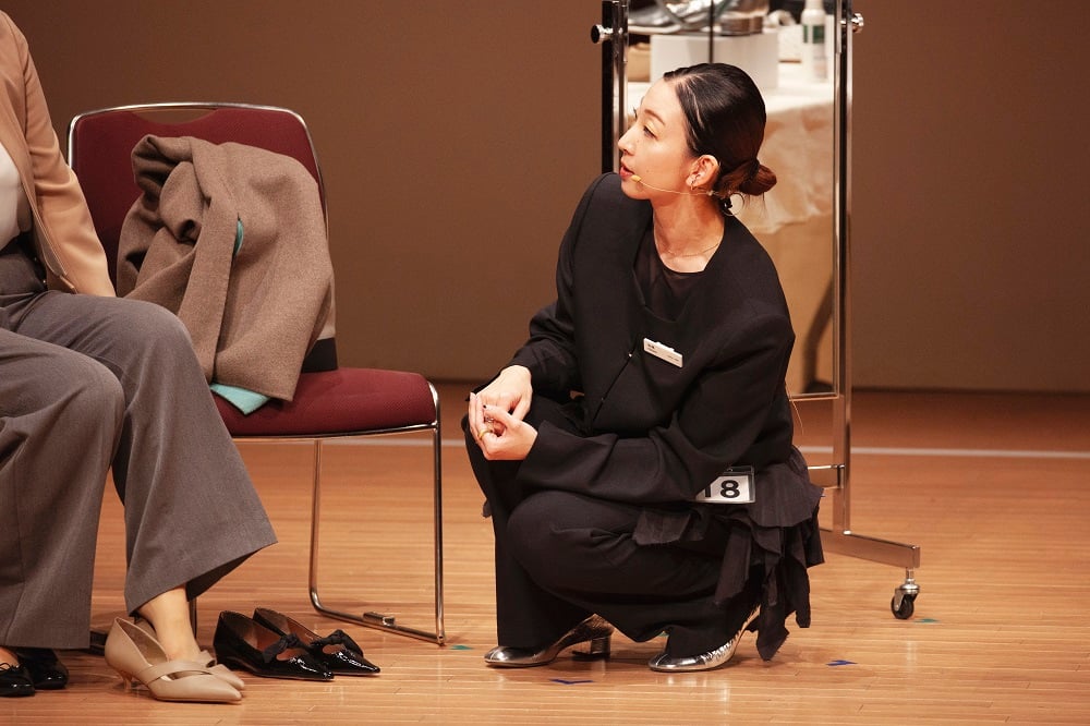 8分間の接客審査では、お客様の要望に対する提案だけでなく、服装やメイクのアドバイスも交え、新たなチャレンジを応援する接客を行った