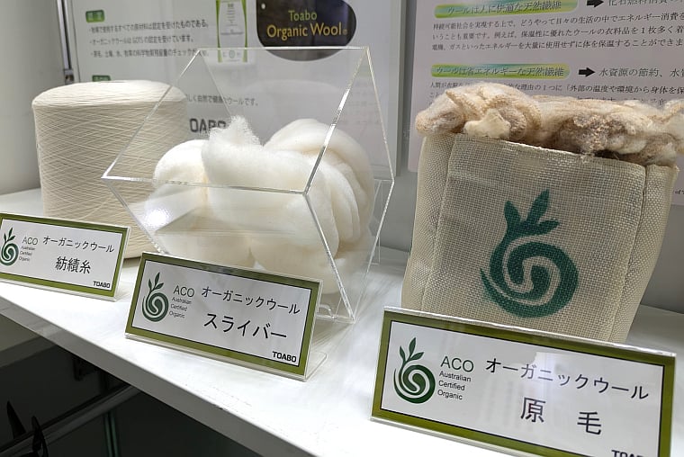 トーア紡オーガニックウールは、オーガニック繊維を使った製品の国際基準GOTS(グローバル・オーガニックテキスタイル世界基準)認定のアルゼンチンにある牧場で刈った原毛。同国およびウルグアイにあるGOTS認定のトップメイキング工場で加工し、東亜紡織の紡績を担う宮崎工場で備蓄している。