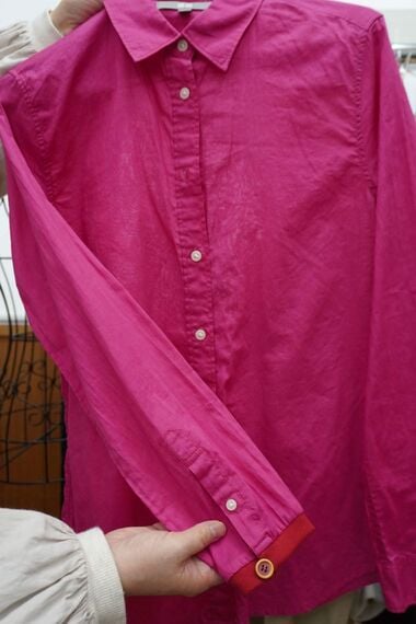 立ち上げから一年、橋本さんのもとには、病院やがんサロンに通う人を中心に約20人が訪れ、約50枚を〝ユニバーサル加工〟してきた。事故の影響で首から下にまひが残る男性が手を上げずに着られるようワイシャツの脇をファスナーに切り替えたり、病気の影響で腕が腫れるという声にはカフスをリブに付け替えたり。