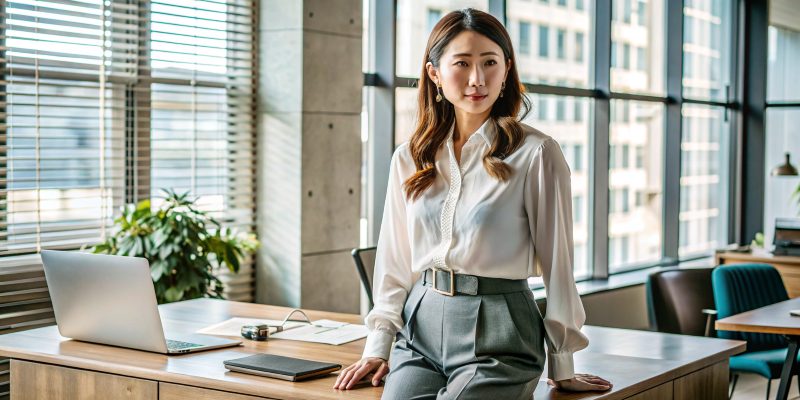 ・オフィス:ワイドパンツ × ブラウス × ジャケット