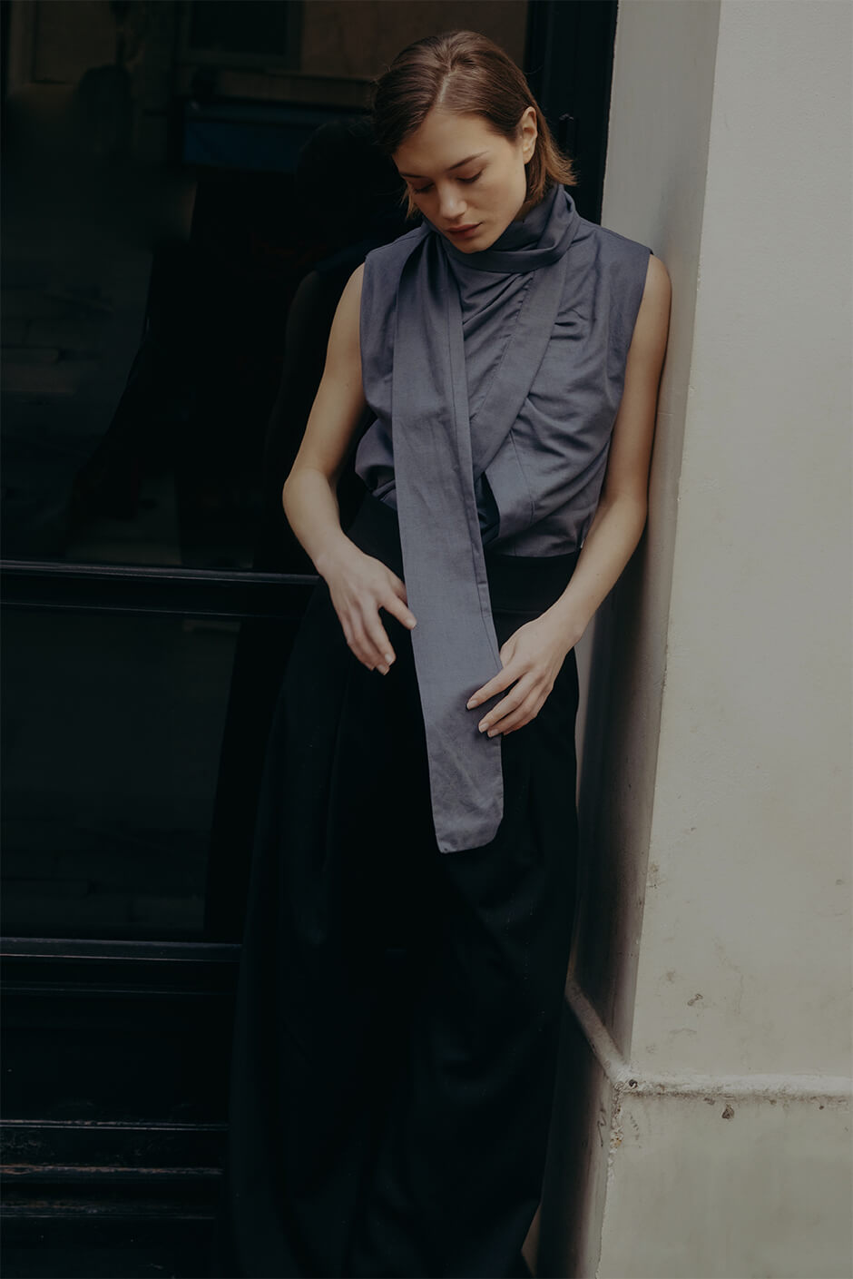 top by DEZACATO, shoes by MANGO, belt by TSYRK, vintage trousers stylist’s own