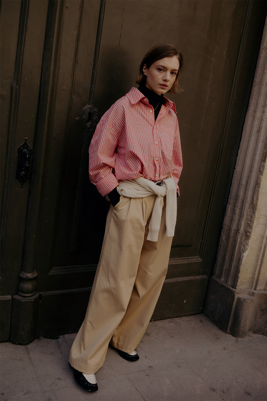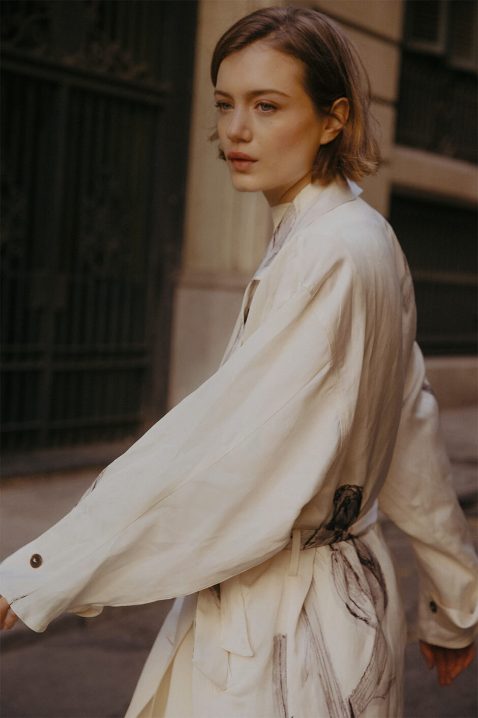 coat by TSYRK, shirt by RALPH LAUREN, shoes by ZARA