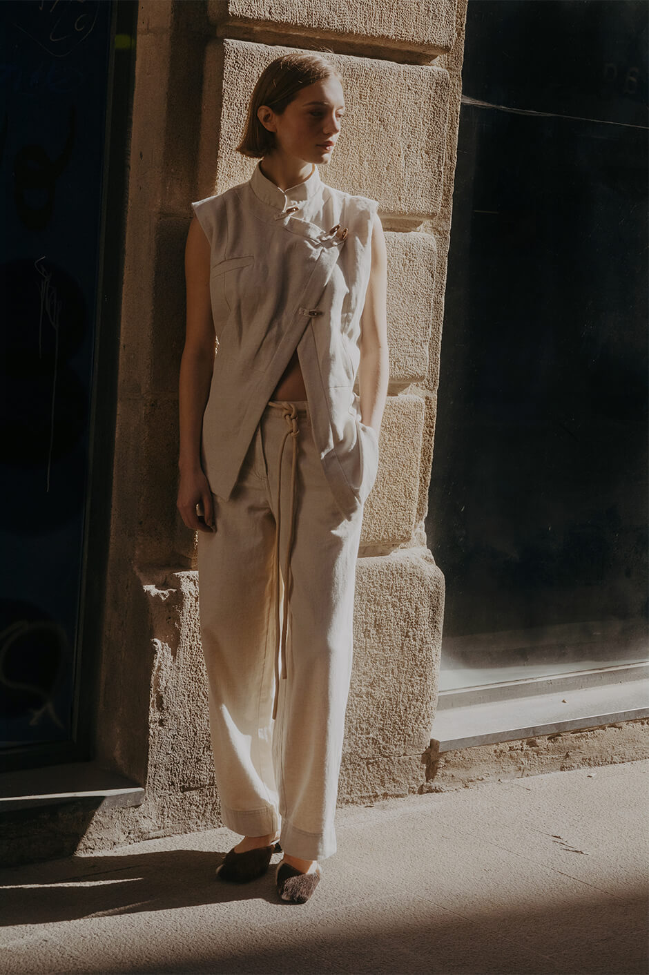 coat by ADOLFO DOMINGUEZ, trousers by LEMACHET, shoes by MANGO