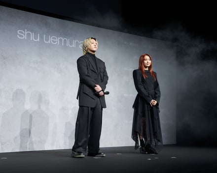発表会に登場したikuraは、「シュウ ウエムラは日本発のブランド。日本で生まれたJ-POPの音楽をつくっている私たちがご一緒することができて光栄です。私たちの活動においてもメイクアップはとても重要で、自信を持たせてくれるもの。活動とリンクさせながら日本由来のシュウ ウエムラの良さをアピールしていけたら」とコメント。Ayaseは「アンバサダーとして僕ら自身がかっこよく、素敵でいなければと身が引き締まります。シュウ ウエムラのメイクを使わせていただきながら、ミュージシャンとしてかっこいい音楽を発信していきたいです」と意欲を見せた。
