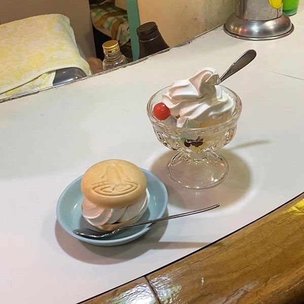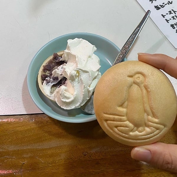 「白泉堂」の喫茶でオーダーしたいのが、プリントされたペンギンがキュートなもなか。