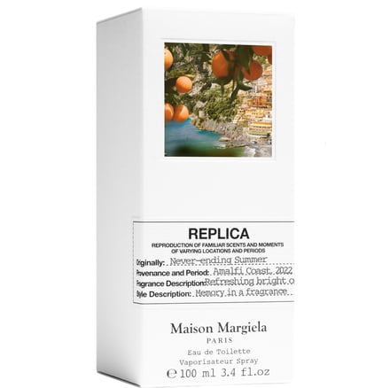 メゾン マルジェラ「レプリカ」フレグランスが、新作「レプリカ オードトワレ ネバーエンディング サマー」(10mL 5280円、30mL 1万1880円、100mL 2万3540円)を6月5日に発売する。柔らかな夏の陽射しに包まれたアマルフィ海岸で熟したオレンジの香りが風とともに運ばれてくる様をイメージした、シトラス ウッディーの香りに仕上げた。