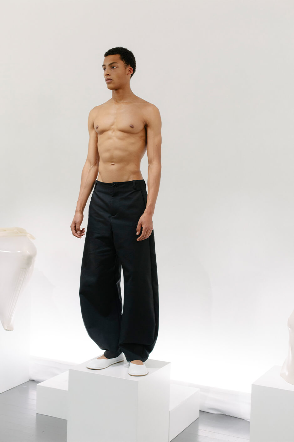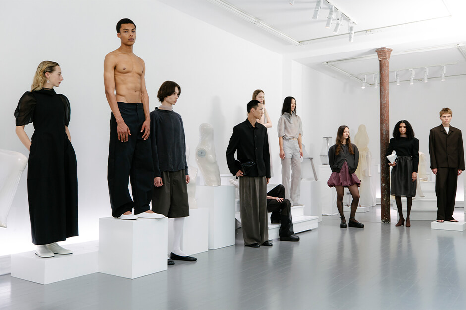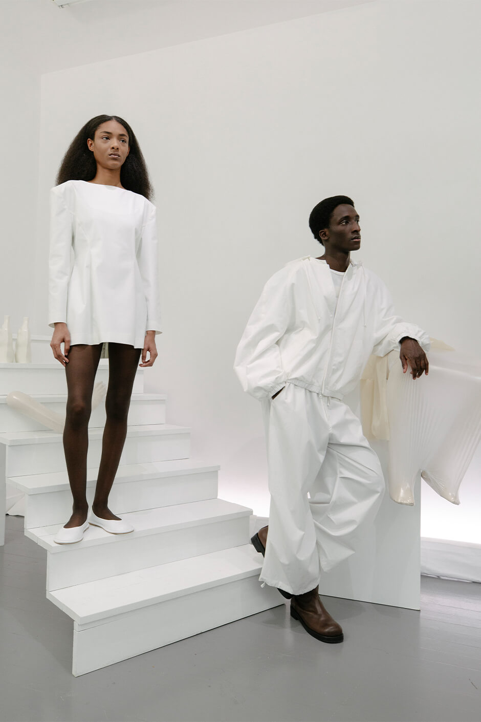 ファッションが有意義な自己表現の手段として機能するようにとの想いを込め、時代を超えたクラシックや建築的に再解釈されたシルエットを提案する。