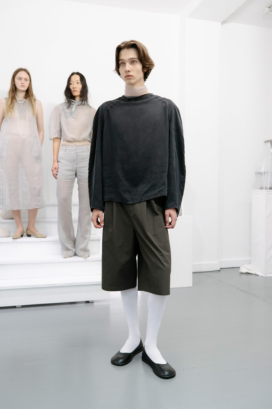 コレクションはLEEの個人的な感情や経験から生み出され、オリジナルテキスタイルの開発や洗練されたディテールなど、快適な着心地に加えて独自の美学を表現する服作りを追求する。