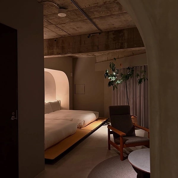 コンクリート打ちっぱなしの内装が、とってもおしゃれなホテルです。お値段は、1泊2名・1部屋利用で3万円前後~(日にち・部屋タイプによって変動)。