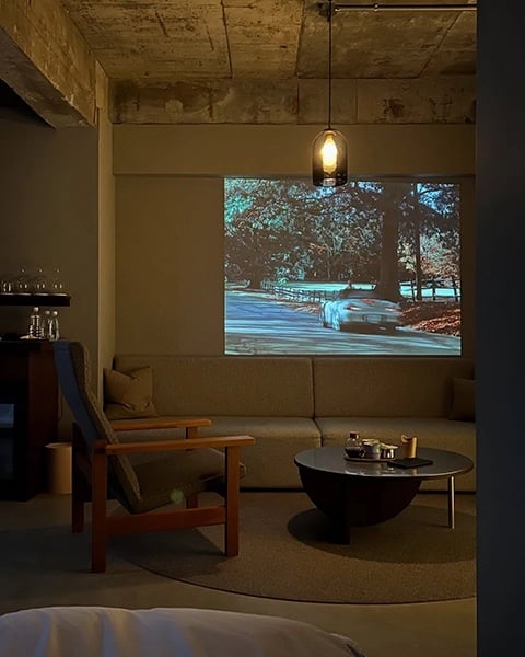 おしゃれな客室は、ただ宿泊するだけではもったいなくなりそう。どのお部屋を選んでもプロジェクターが設備されているので、おしゃれな空間でゆったりとした時間を過ごせますよ。