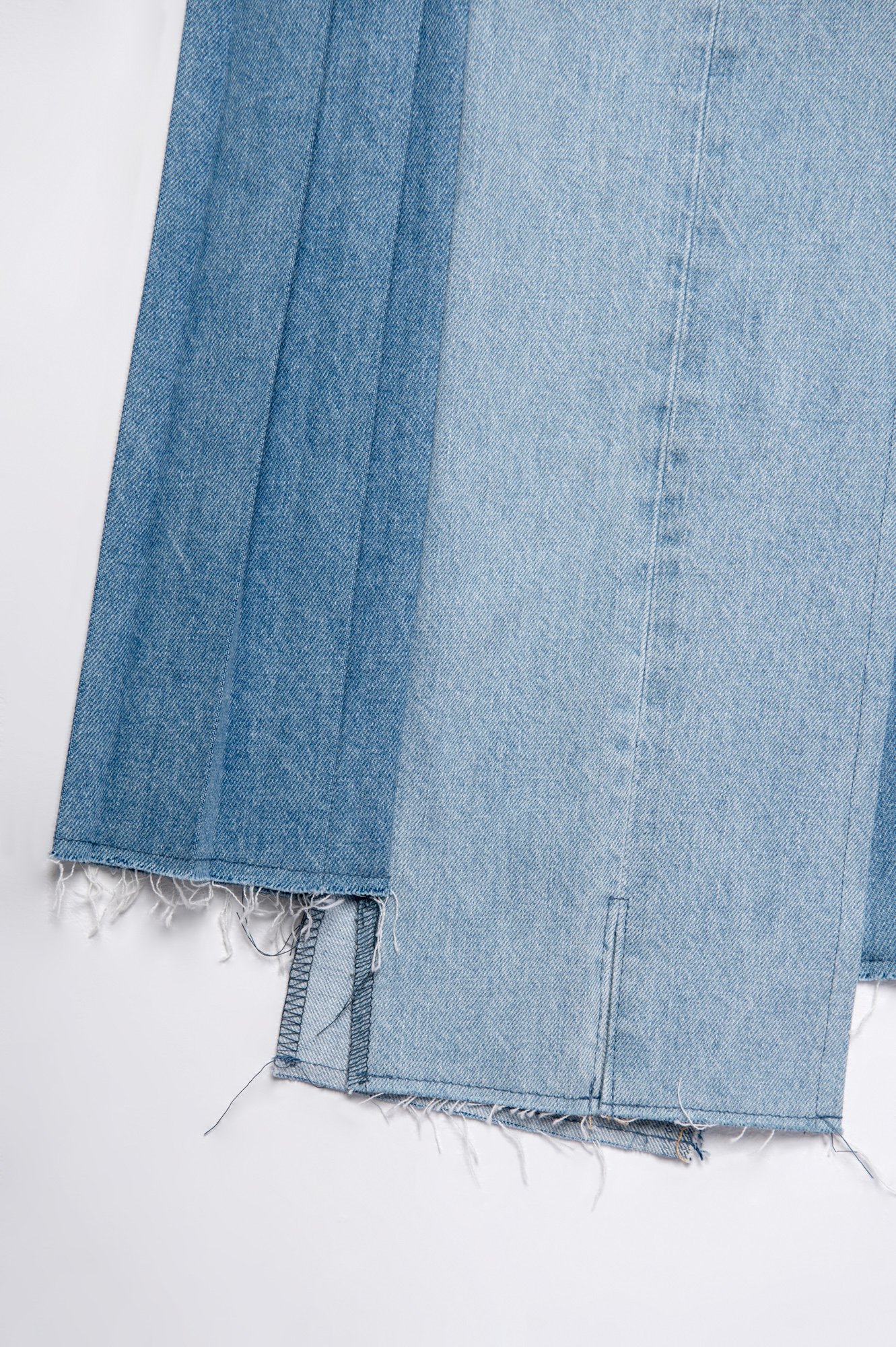 また、先月開催したポップアップで好評だったという日本のデニムブランド「クロ(KURO)」とのコラボレーションアイテムの新作も展開。ブランドのスキニーデニムやストレートフィットデニムを全て手作業で解体して再構築し、ウォッシュ加工を施したリメイクプリーツスカートを用意する。インディゴとブラックの2色展開で価格は11万円。