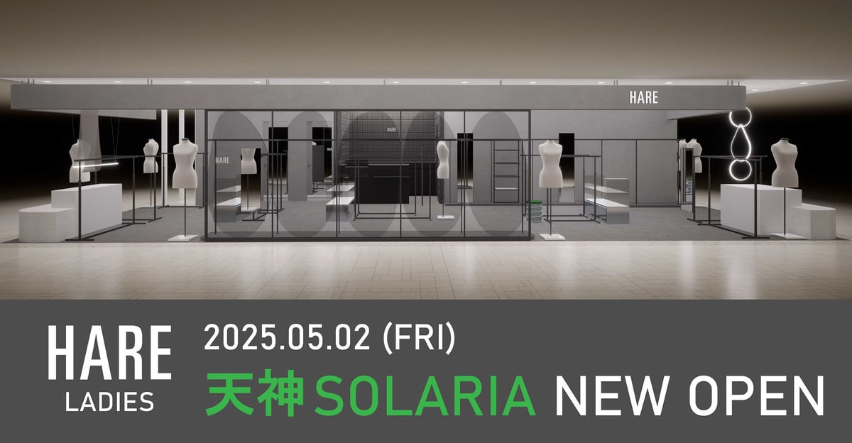 アダストリアが展開する「ハレ(HARE)」が、九州エリア初出店となるウィメンズ単独店を福岡・天神のソラリアプラザ3階にオープンする。開店日は5月2日。