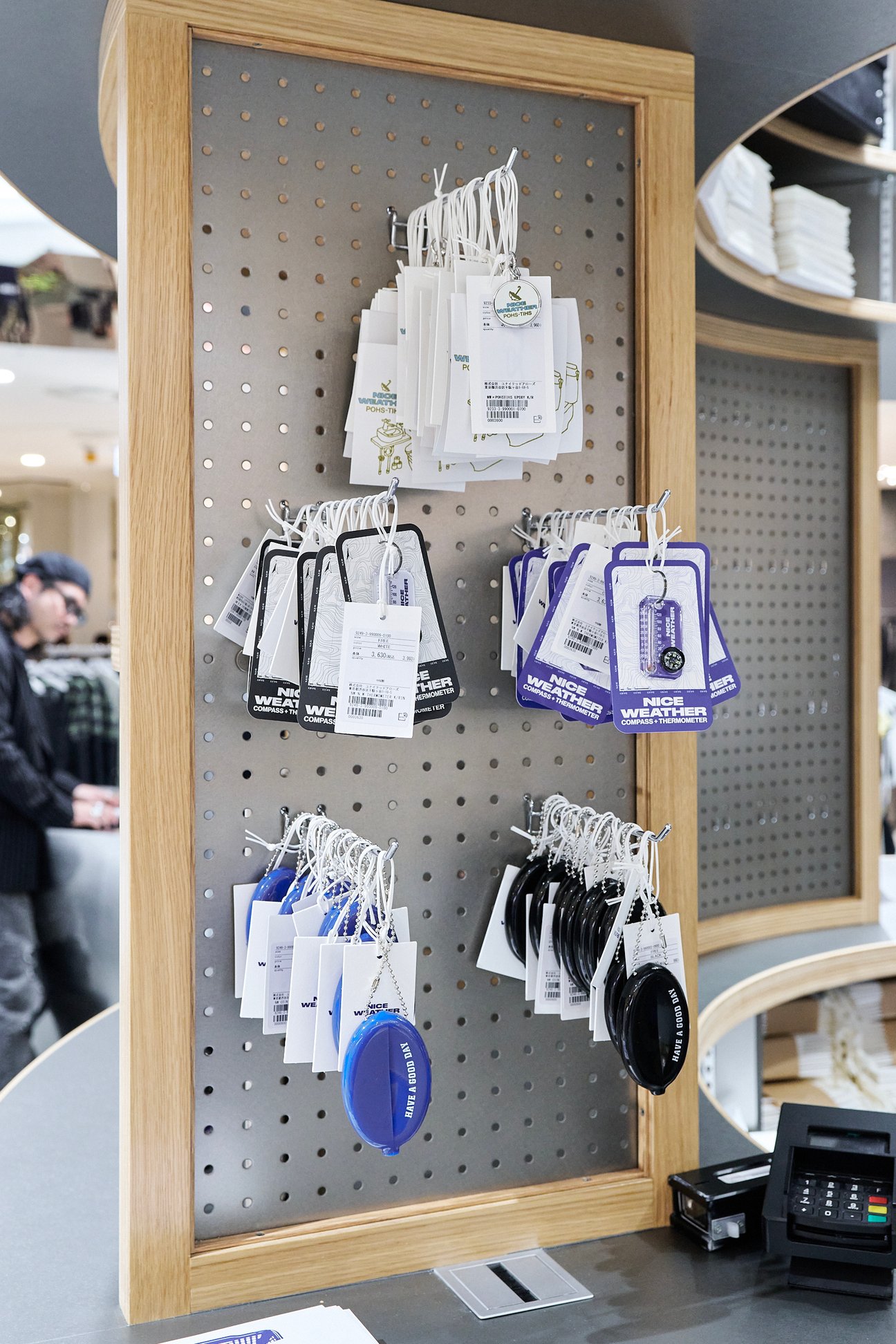 「カテゴリの超越」の中心となるのが、今回日本初出店となる「ナイスウェザー(NICE WEATHER)」。2020年に韓国・ソウルで誕生したセレクトショップで、担当者は「世界で最もカテゴリを超越した提案ができているショップ」として今回出店を要請したという。「次世代のコンビニ」をコンセプトに、ウェアやグッズ、雑貨などのオリジナルアイテムや、韓国ブランドとの限定コラボグッズを取り揃える。