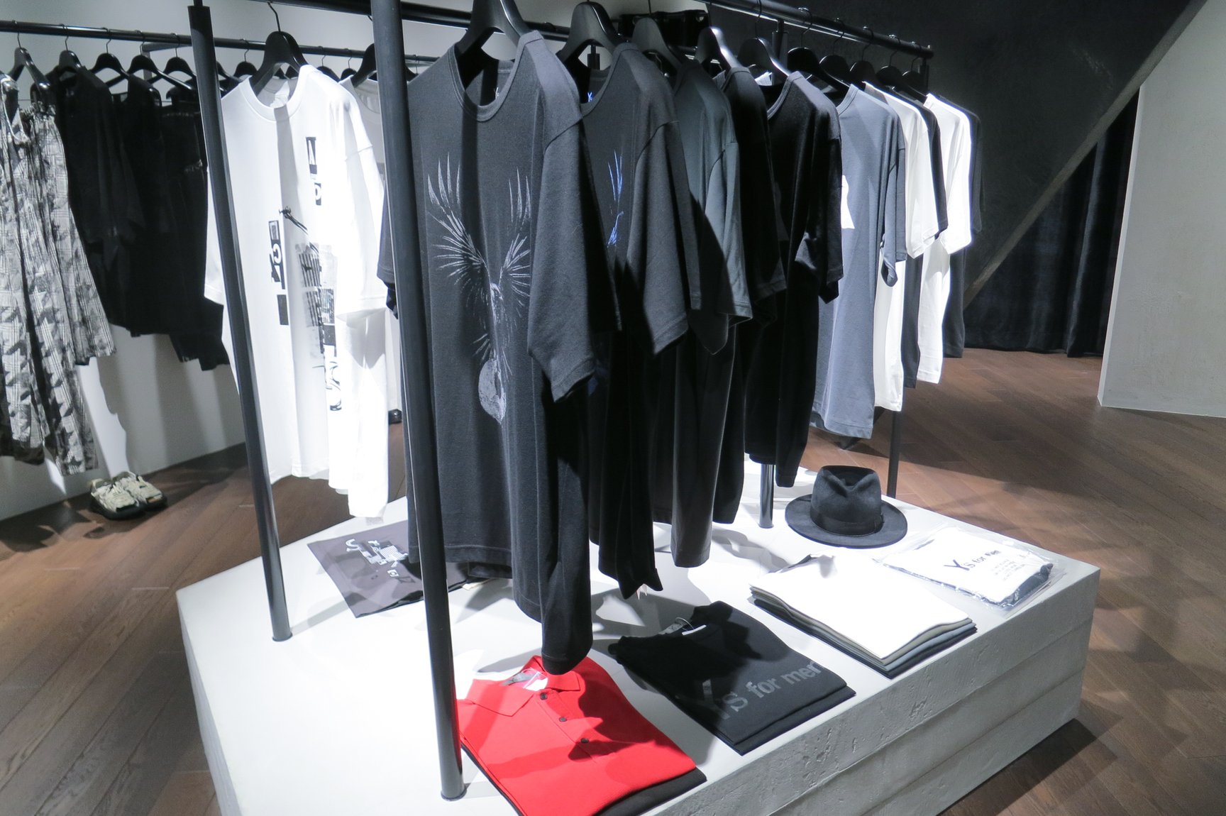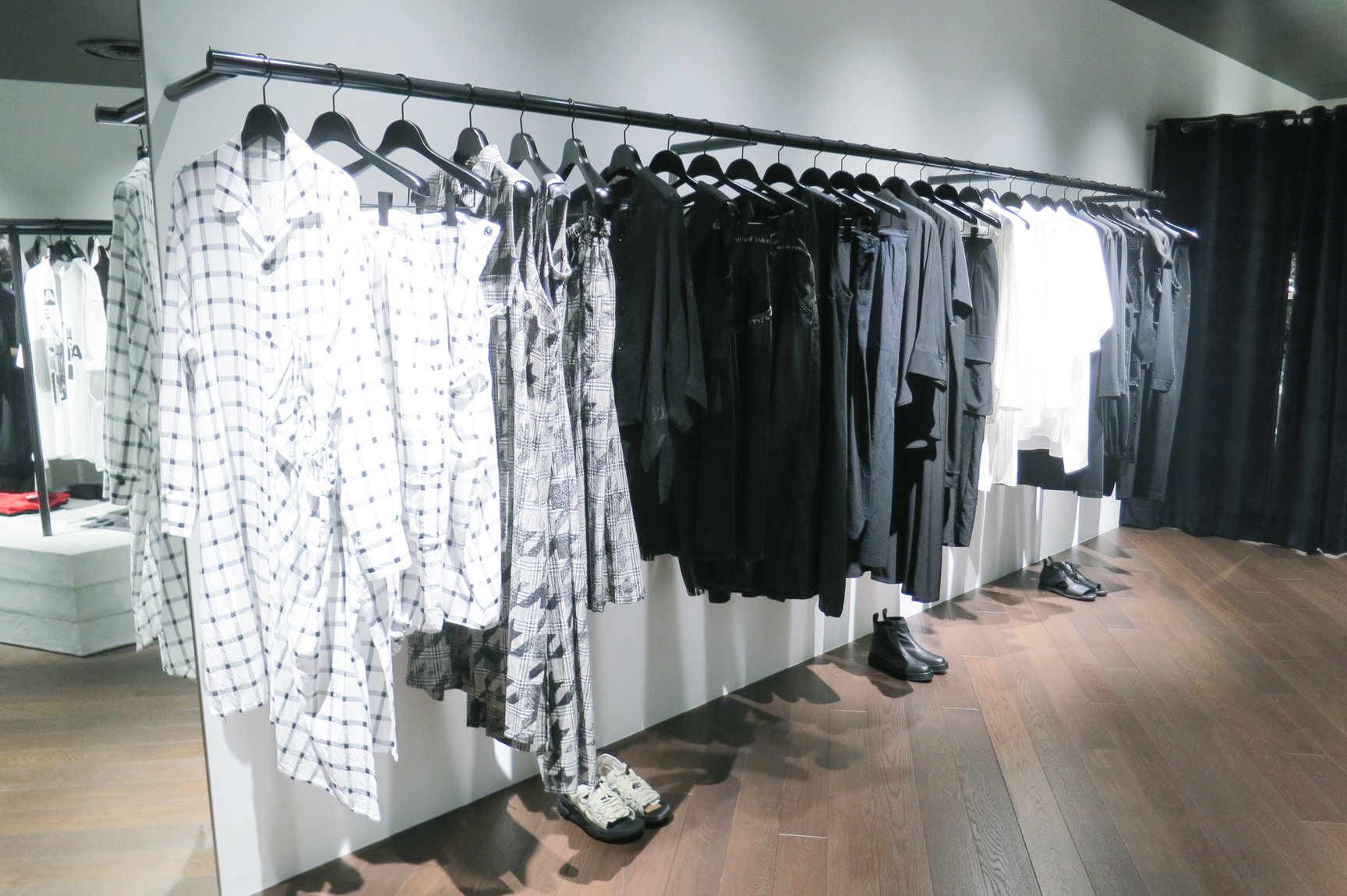 ワイズ / ワイズフォーメンのエリアでは、手前にウィメンズであるワイズ、奥にメンズのワイズフォーメンを配置。オープン時の店内では、2025年春夏コレクションの新作の数々が並ぶほか、渋谷パルコ店限定コレクションも展開している。