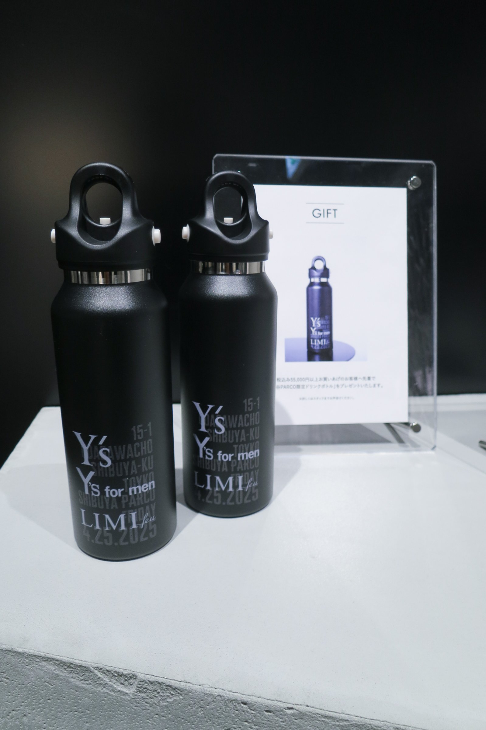 同店のオープンを記念して、5万5000円以上の買い上げ客を対象に、3ブランドのグラフィックワークを配したドリンクボトルを数量限定で配付している。
