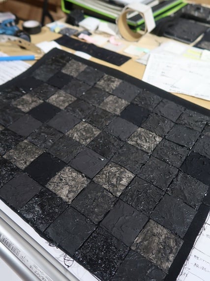 別府星士朗さんはコードをグリッド状に縫い合わせて、視覚的な変化のあるジャケットを制作した