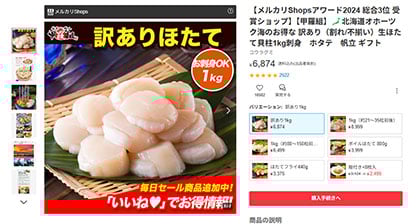 出店以降、売り上げは順調に推移。メルカリShopsの優秀店舗を表彰する「メルカリShopsアワード2024」において、総合3位を受賞した。福地氏は「他の仮想モールはリピーターが70%程度を占めることが多いが、メルカリShopsの場合は新規がほぼ半数を占めている」と説明。売上金を使う目的ということもあるのか、安い商品を探しているユーザーが多い傾向にあるという。