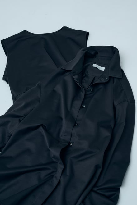 コレクションでは、ノースリーブブラウス(2万4200円)、シャツ(2万7500円)、マキシスカート(2万8600円)、ワンピース(3万3000円)の4型を展開。生地にはブランドを象徴する46ゲージの超ハイゲージタイプライターニットを採用し、カラーはBLACK、BLUE、DARK BROWN、LIGHT SAX、LIGHT YELLOW、REDの全6色を揃える。