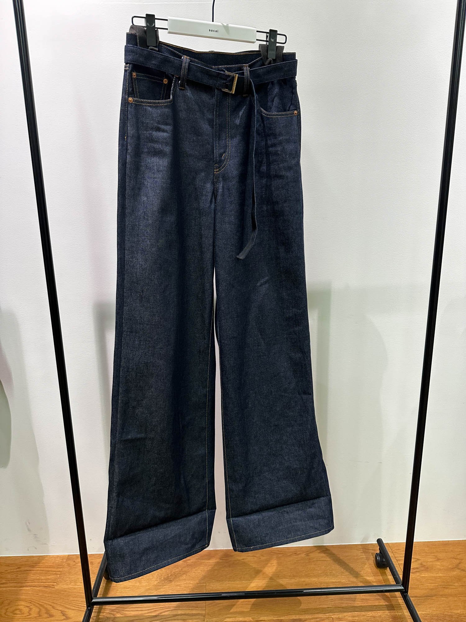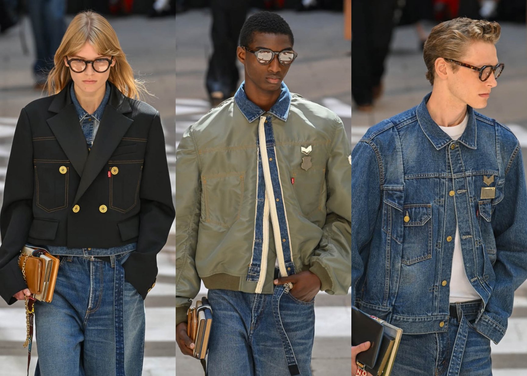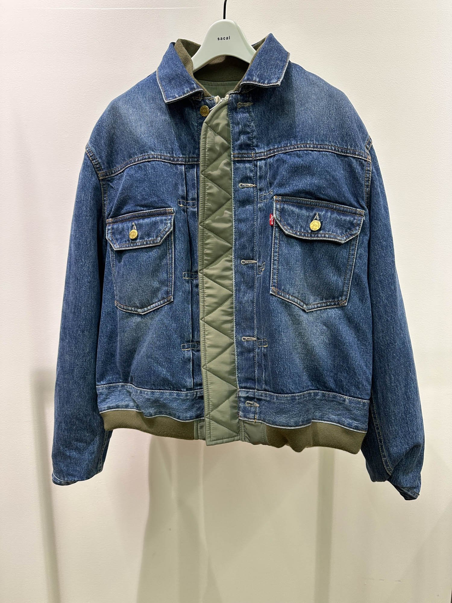 ウィメンズでは、ボクシーなAラインシルエットのジャケット(8万8000円)、サカイ独自のマテラッセツイル素材をドッキングしたデニムジャケット(12万1000円)、フレアジャンプスーツ(11万円)の計3型をラインナップ。メンズでは、通称「ファースト」「セカンド」「サード」と呼ばれるリーバイス歴代のデニムジャケット3モデルを1着にドッキングしたかのようなデニムジャケット(8万8000円)、テーラード仕様の表面とトラッカージャケット仕様の裏面を組み合わせたリバーシブルジャケット(14万3000円)、ナイロンとデニムを組み合わせたリバーシブルブルゾン(12万1000円)の計3型を揃える。ユニセックスでは、ウルトラワイドのバギージーンズ(4万9500円)が登場。デニムとグログラン生地のリバーシブルベルトが付属する。
