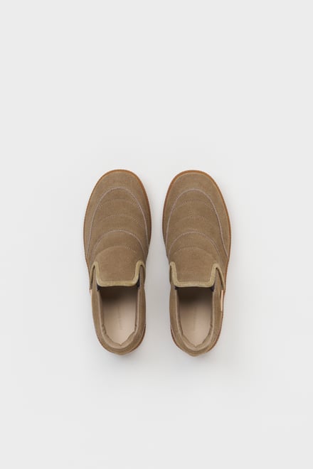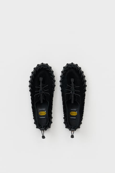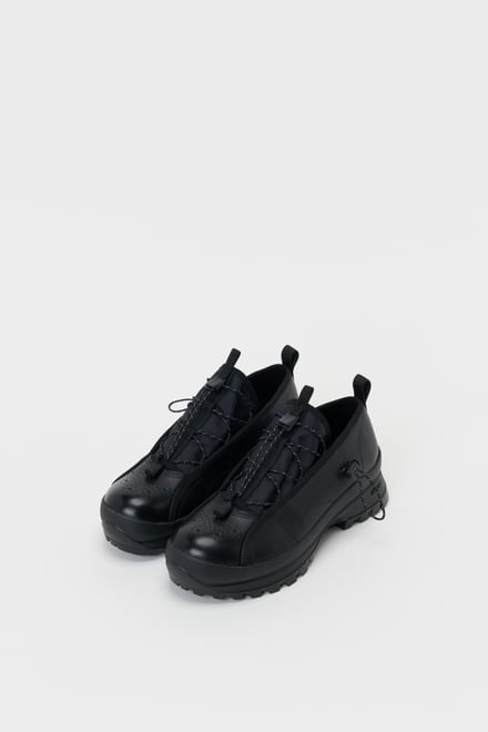 シューズラインからは、伝統的なアーガイルパターンをレザーで立体的に表現した「アーガイル ローファー(argyle loafer)」(6万9300円)や、コードアジャスターによってホールド性を高めた「ネオ タープ トレック(neo tarp trek)」(7万4800円)を展開。素材にムートンを採用し、秋冬仕様にアップデートした「ムートン アンリ(mouton henri)」(5万3900円)、はっ水ベロア仕様の「デリダ(Derrida)」(4万2900円)、「ハンモック(hammock)」(3万9600円)などの継続モデルも新仕様で登場する。