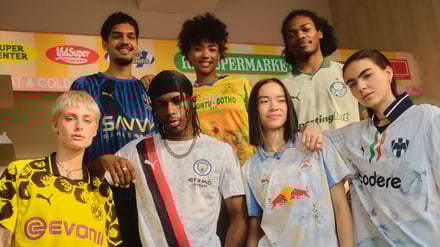 ユニフォームは、「マンチェスター・シティ(Manchester City)」「ボルシア・ドルトムント(Borussia Dortmund)」「パルメイラス(Palmeiras)」「FC ザルツブルク(FC Salzburg)」「マメロディ・サンダウンズ(Mamelodi Sundowns)」「アル・ヒラル(Al-Hilal)」「モンテレイ(Monterrey)」の7チームのものをベースに、それぞれのチームのアイデンティティや文化的背景を再解釈したデザインを反映。マンチェスター・シティのユニフォームには同チームを象徴する「ポズナングラフィック」を全面にデザインし、2色のラインをあしらった。ボルシア・ドルトムントのユニフォームは肩から袖にかけてハニカム構造に着想を得た六角形の模様を施してエネルギッシュな印象を演出。パルメイラスは1951年のクラブワールドカップ初代王者を称えたバロック調のユニフォームに葉のモチーフをデザイン。また、FC ザルツブルクはアルプスの景色、マメロディ・サンダウンズは南アフリカのツワネ市都市圏の夕暮れ、アル・ヒラルはアラビア語で新月を意味するクラブ名にちなみ月をモチーフにしたグラフィックをそれぞれあしらった。価格は各1万4300円。
