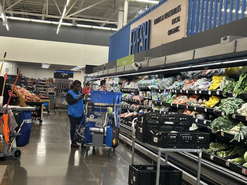 トップ画像:ピッカーを見ない売り場はないほどウォルマートのネットスーパーは熱狂している。しかも黒字化を達成した。米国流通視察ではスマートフォン・アプリをつかった実習が必須だ。反論は認めない。