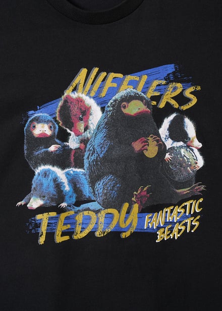 コラボでは、映画「ハリー・ポッター」シリーズと映画「ファンタスティック・ビースト」シリーズの世界観を落とし込んだ計13アイテムをラインナップ。フードにヴォルデモートの顔を配した半袖パーカ(5900円)や、ハリー、ロン、ハーマイオニーの守護霊をプリントした半袖Tシャツ(3500円)、映画「ハリー・ポッターと不死鳥の騎士団」からダンブルドア軍団のメンバーを総柄であしらった半袖シャツ(6900円)などのアパレルのほか、「ファンタスティック・ビースト」シリーズに登場する魔法動物 ニフラーを刺繍したバッグ(3900円)や組み分け帽子のデザインを踏襲したリバーシブルバケットハット(4500円)といった小物を展開する。