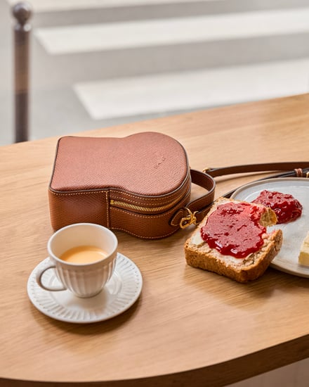 トーストバッグは、パリのベーカリー職人から着想を得て食パンのフォルムを採用。小さめのハンドルと取り外し可能なショルダーストラップ付きで、ハンドバッグ、ショルダーバッグ、クロスボディバッグの3way仕様となっている。素材にはグレイン加工のカウハイドレザーを採用し、金具はゴールドで統一した。価格は7万2600円。