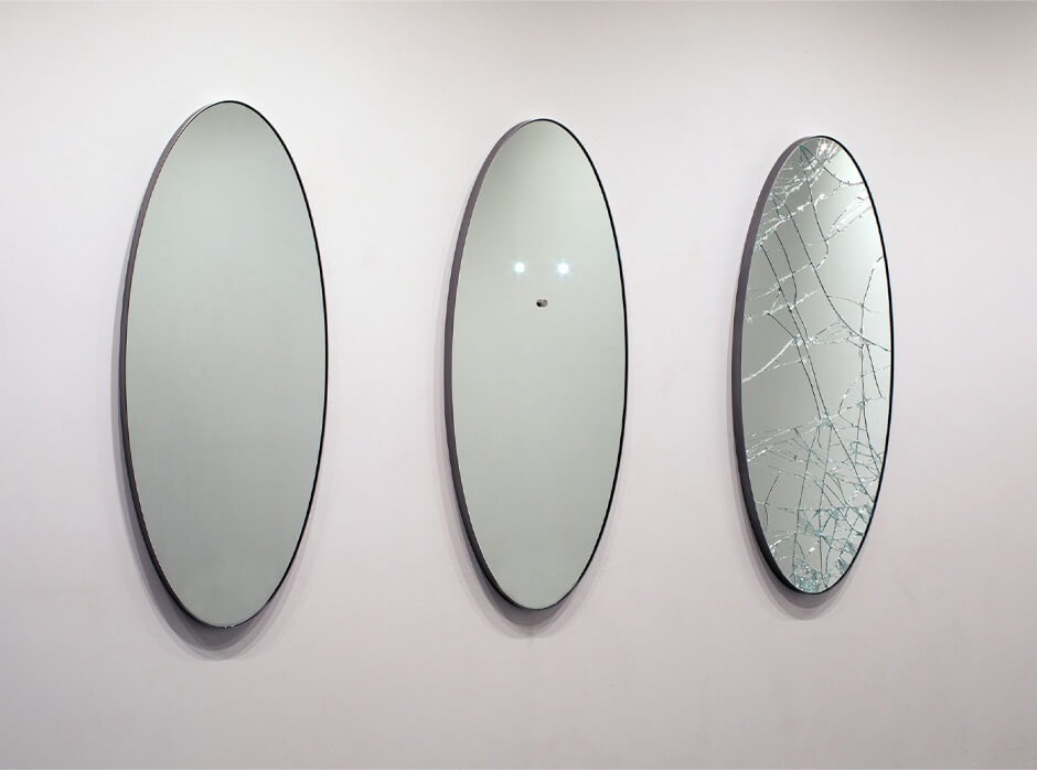 彼女が初めて制作したオブジェ作品の一部や、3つの鏡が鑑賞者自身が変化していくさまを映す初公開作品「Three Lives」(2019)が展示される。