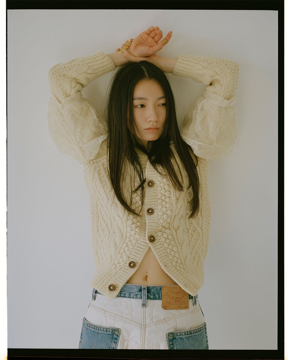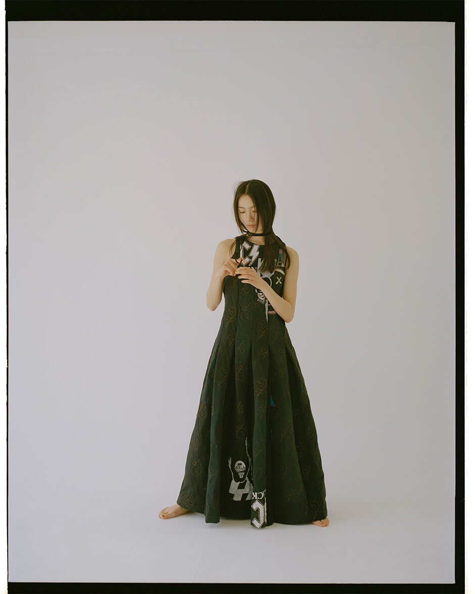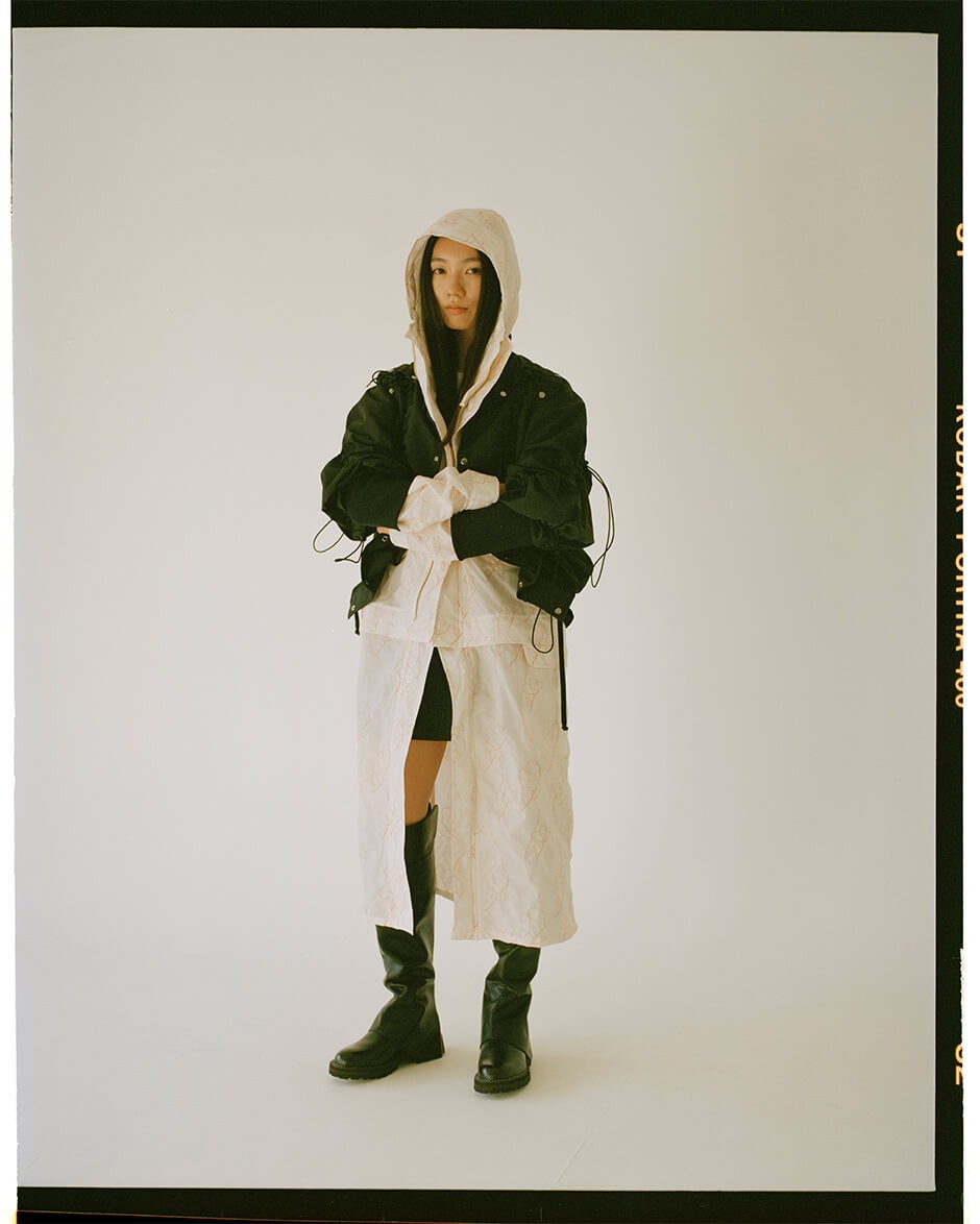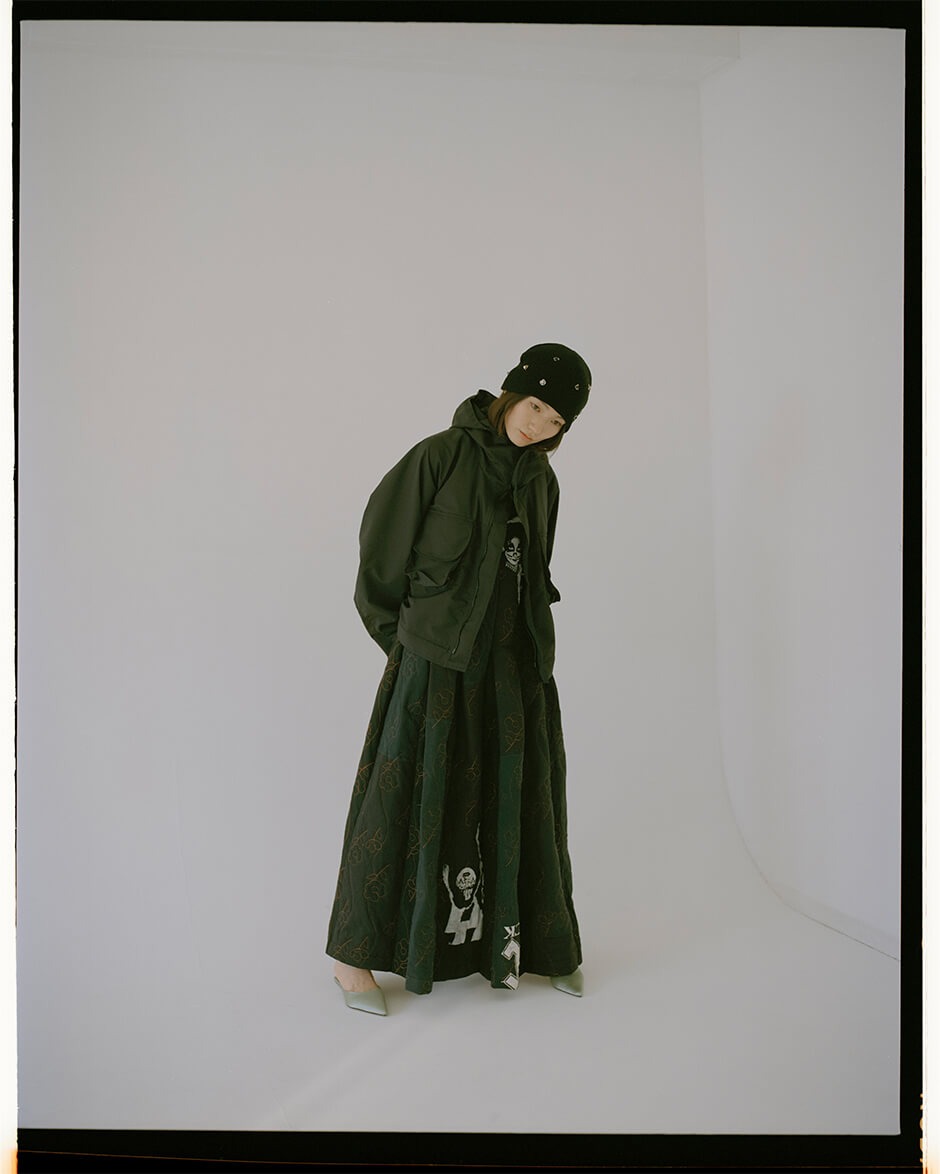 デッドストック生地やリサイクル素材、また古着といった素材に新たな命を吹き込むコレクションは、既存の枠にとらわれないブランドの美意識を体現。