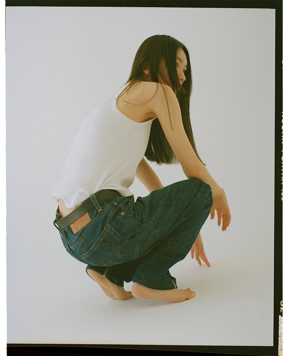 また、デニムやTシャツには手刺繍や印象的なテクスチャー加工が施され、フェミニンなディテールとスポーティさをあわせ持つデザインへと進化。