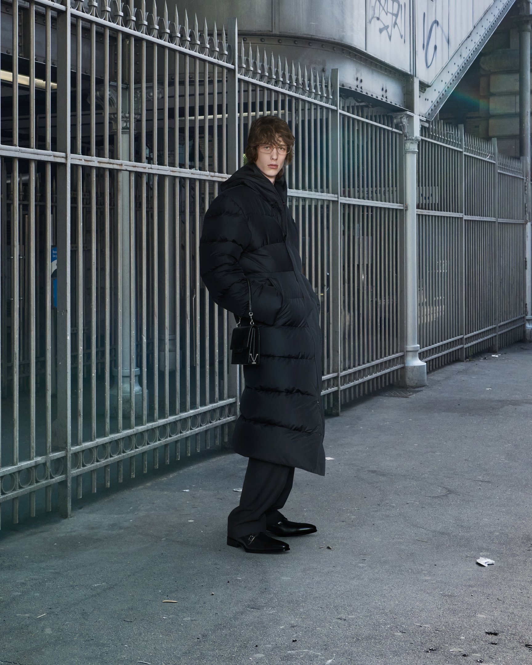 同コレクションは、「ブルジョワジー」のドレスコードの考察から出発。ウィメンズのテーラードウェアには、顔を縁取るチューリップ型のラペルや、メディチ家を彷彿とさせるハイカラーのネックラインを施した。メゾンの伝統である彫刻的な構造の衣服は、より軽やかで簡潔なスタイルにアレンジ。誇張されたアワーグラスのシルエットは、快適な仕様に再構築したコルセットで叶えた。