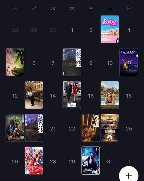 こちらもカレンダー表示なので、いつどんな作品を観たのかがひと目でわかりますよ。