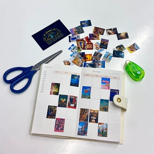 いろんな形の映画ノートがある中でも、今回ご紹介するのはスケジュール帳に映画のポスターを貼って作る方法。