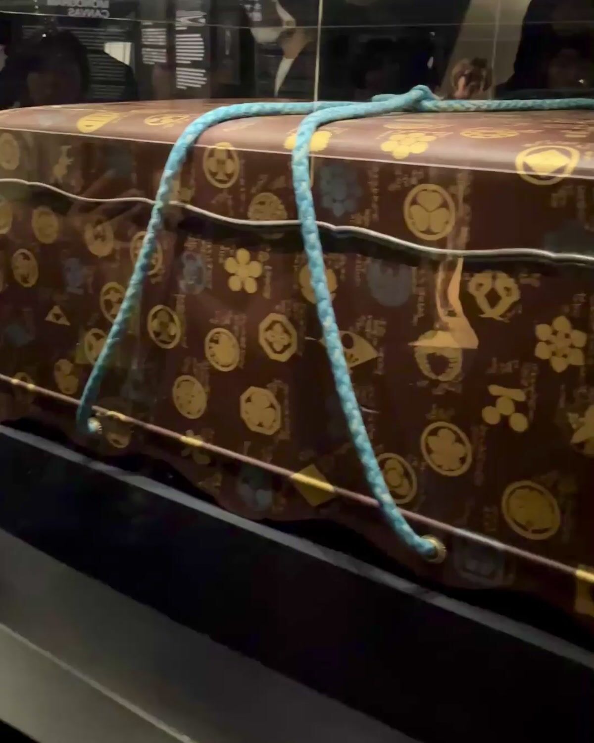 吹き抜けのアトリウムに設置されたランタンのように光る和紙のトランクタワーにはじまり、1854年にルイ・ヴィトンが創業してから現在までの物語を表現。未だ謎に包まれているというモノグラム・キャンバスの起源を辿る展示では、日本の家紋との関連性にも触れている。考案者である2代目ジョルジュ・ヴィトンがジャポニズムに感銘を受けた可能性を示す資料として、1889年にパリのギメ東洋美術館に展示された徳川家斉のものとされる旅行用トランクを展示。漆塗りの木製ボディに家紋があしらわれたその装飾は、モノグラム・キャンバスのモチーフとの類似性を感じさせ、意匠的な結びつきを浮かび上がらせる。