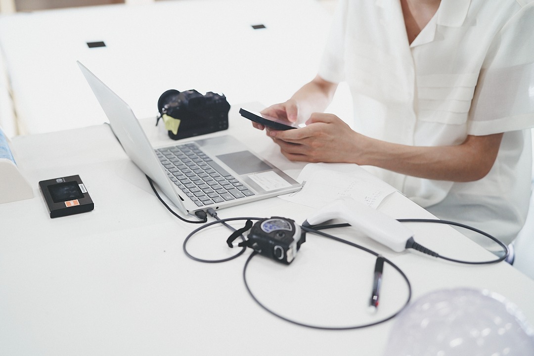物流センターの業務ではお馴染み、ささげ業務(撮影、採寸、原稿)の撮影と採寸を自社システムを使用しながら行っています。物流拠点でこの工程を行うことで、リードタイムを短縮することが可能になります。