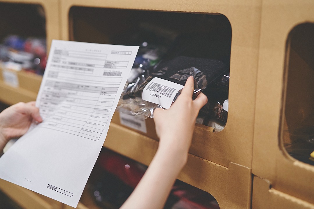 その後、商品情報と保管場所を紐づけて棚入れを行い、出荷に備えます。