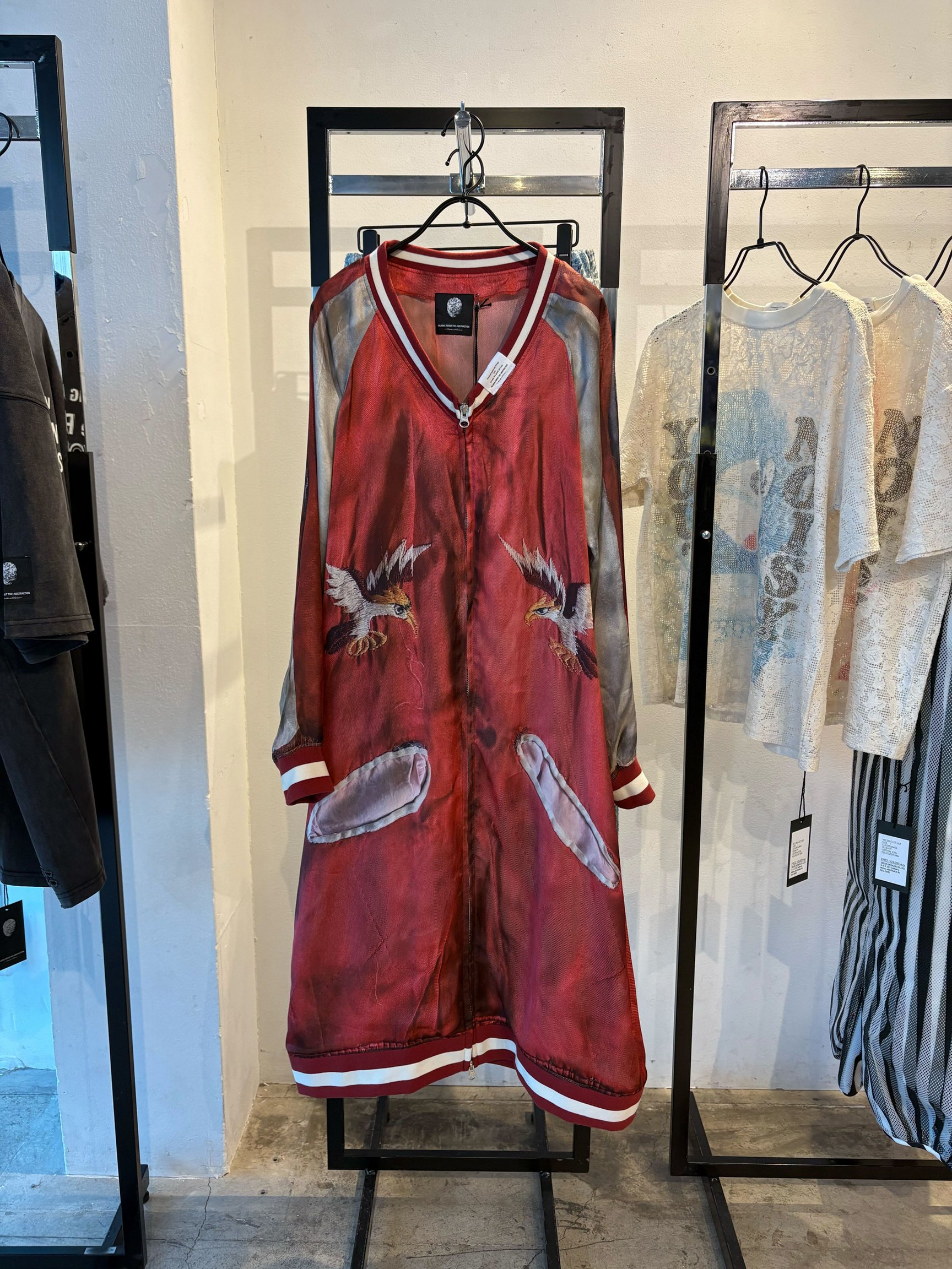 スカジャンをマキシ丈に引き伸ばしたアウター