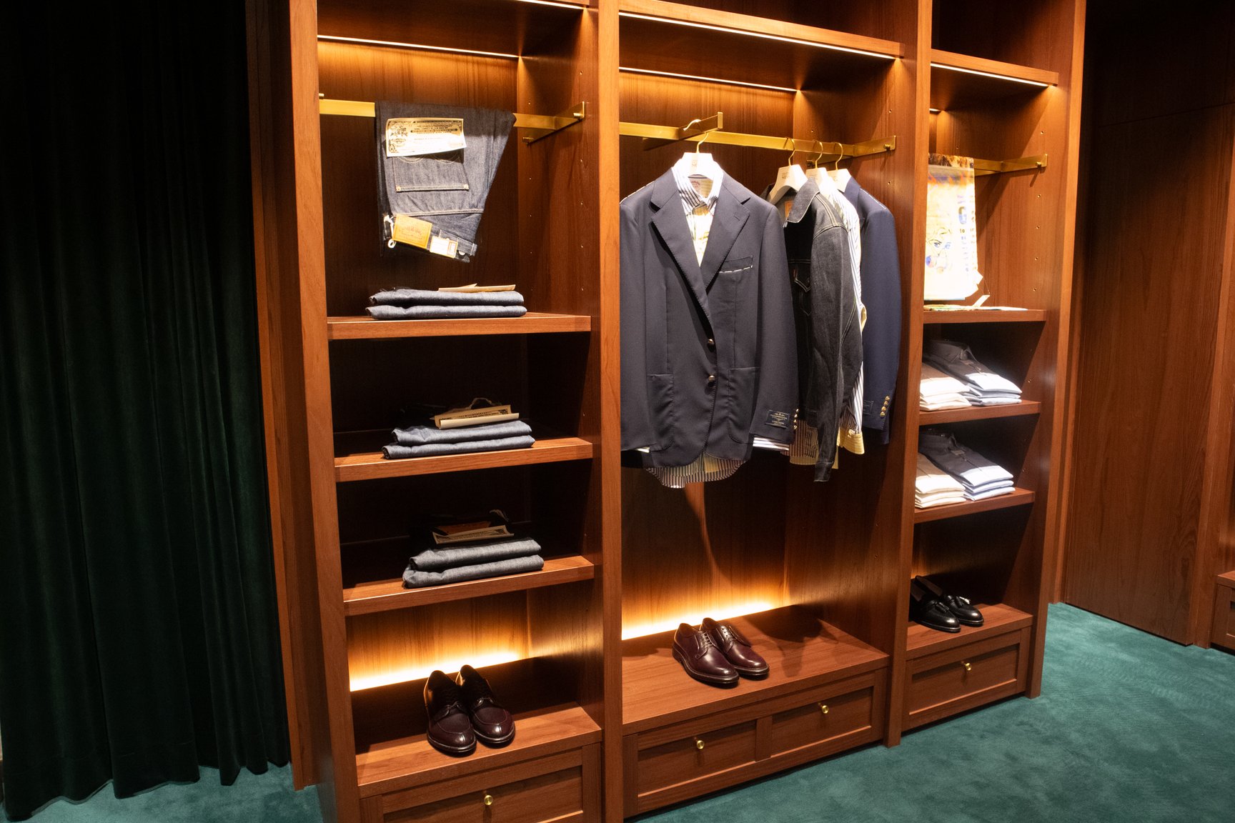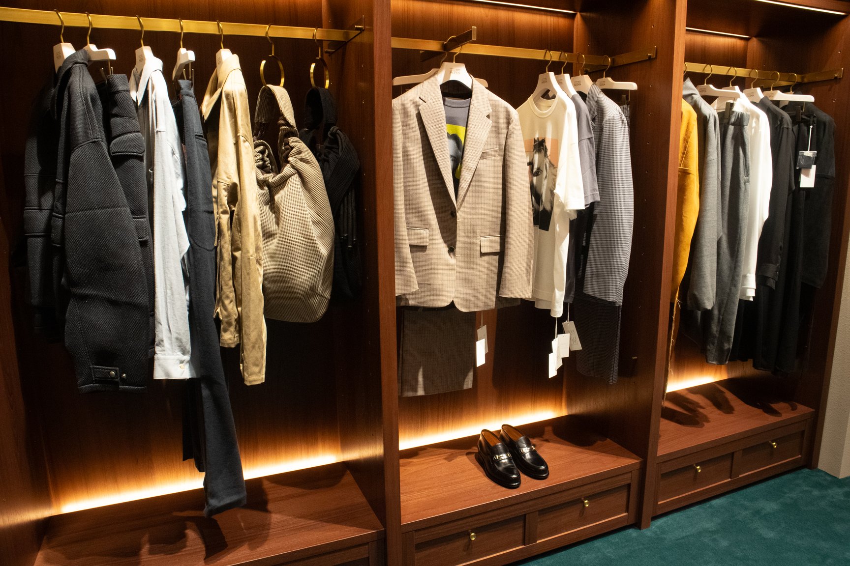 新店舗オープンを機に、今後はオリジナルアイテムの展開を拡大。従来3:7だったオリジナルとセレクトの比率を、5:5まで高めることを目指す。「ドレス」「ベーシック」「モダン」の3つのカテゴリーに分け、それぞれ専門家にディレクションを依頼し製作中だという。特に、スーツなどのテーラードウェアについては、ドレスアイテム専門の工場を採用。クラシックの枠に囚われない自由なスタイルと、より質の高い物作りを両立することで、レーベルの強みであるスーツスタイルを更に発展させる狙いだ。