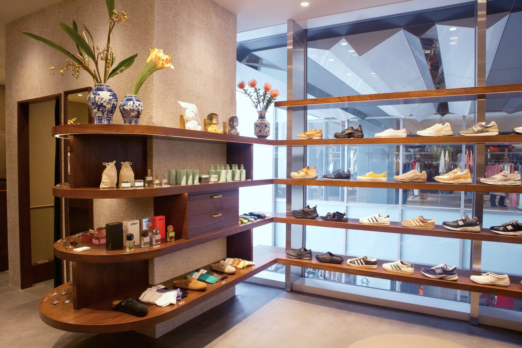 そのほか、女性客も多い同館の客層に合わせ、ウィメンズの展開も拡大。ユニセックスで楽しめるアイテムを豊富に揃えるほか、2026年春夏シーズンからは「ソニアカラスコ(SONIA CARRASCO)」といったウィメンズブランドの取り扱いも予定している。また、レーベルの強みであるスニーカーのセレクトにも引き続き注力。デザイナー キコ・コスタディノフ(Kiko Kostadinov)が手掛けた「アシックス(ASICS)」が並ぶなど、量販店では見られない品揃えを追求した。