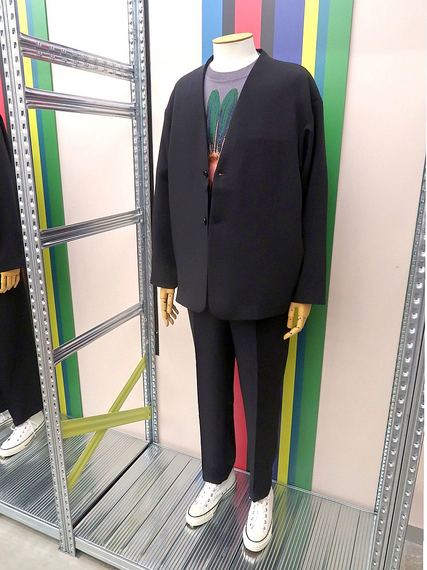 合計16型を扱っており、リラックスした着心地のテーラードアイテムを充実させた。ノーカラージャケット(税込み3万9600円)は、肩の線が体に沿った曲線、袖のプレスラインでメリハリを付ける。パンツはワイド(1万9800円)、ストレート、ショート丈の3型がある。梳毛調のポリエステル素材を使っており、家庭洗濯が可能だ。内ポケットをバイカラーにするなど、ポール・スミスらしい色の遊びを取り入れる。同素材で半袖シャツなどストリート感覚のアイテムも揃えた。